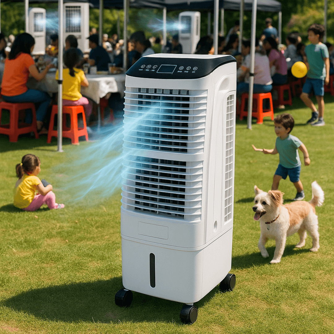 高效節能的蒸發式降溫設備,適用於戶外及通風良好的室內空間。非常適合各類活動、帳篷、露台及戶外聚會使用。